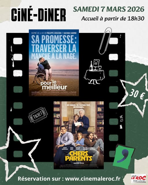 Tous les ans, le Cinéma le Roc vous propose une soirée conviviale entre amis (dans les limites de la capacité de la salle), pour voir deux comédies et dîner.