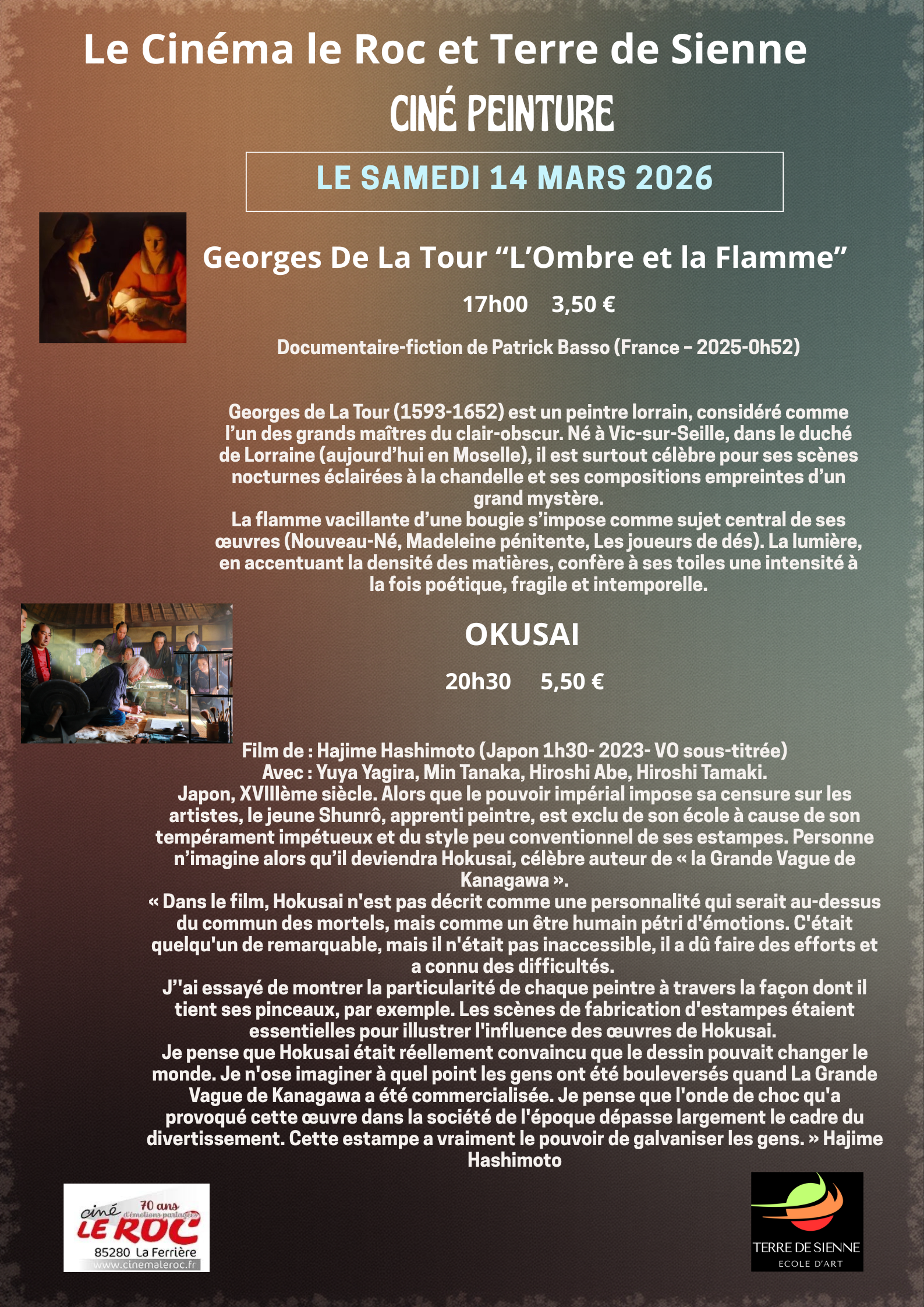 Un rendez-vous culturel incontournable en Pays Yonnais. Chaque hiver au Cinéma Le Roc, « TERRE DE SIENNE » fait son cinéma !